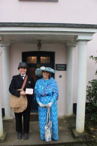 Paula throws herself into all the full local programme as the picture below shows as the nearby village of Drewsteignton remembers WWI . Paula is on the ‘post lady’.